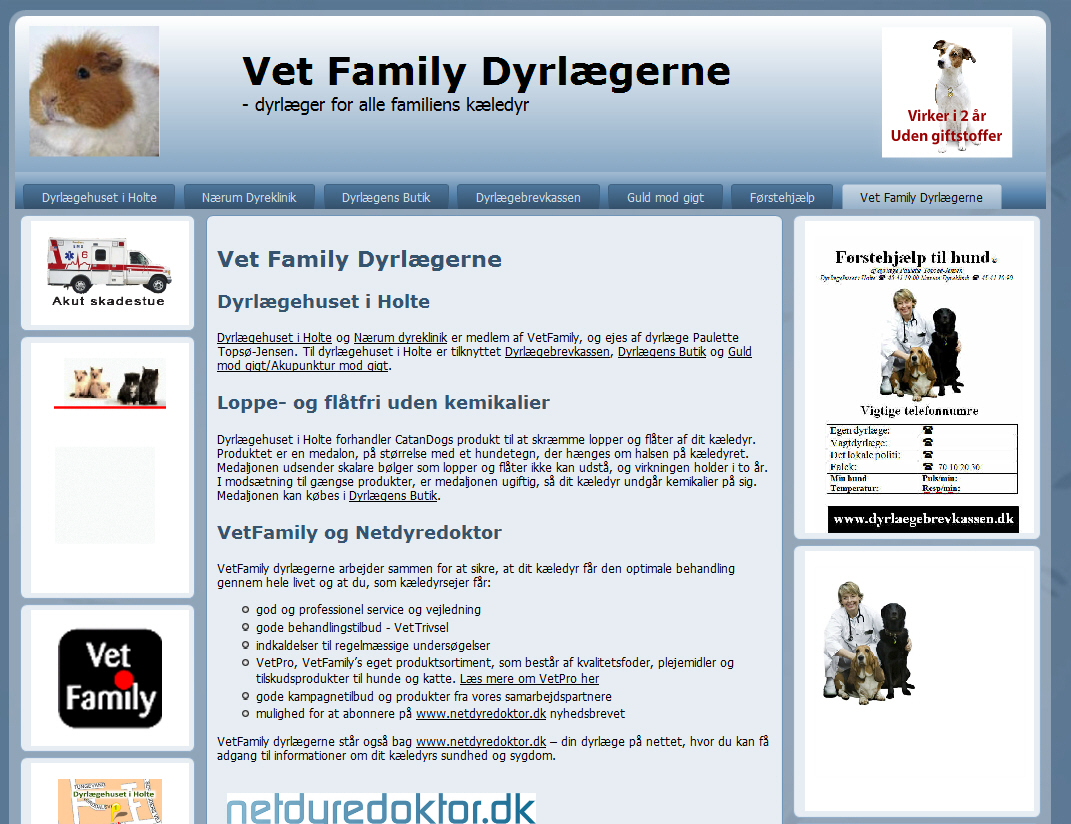 Dyrlægehuset i Holte har flere websteder, opdelt efter placering og emner. Fælles for dem alle er layoutet og platformen.
